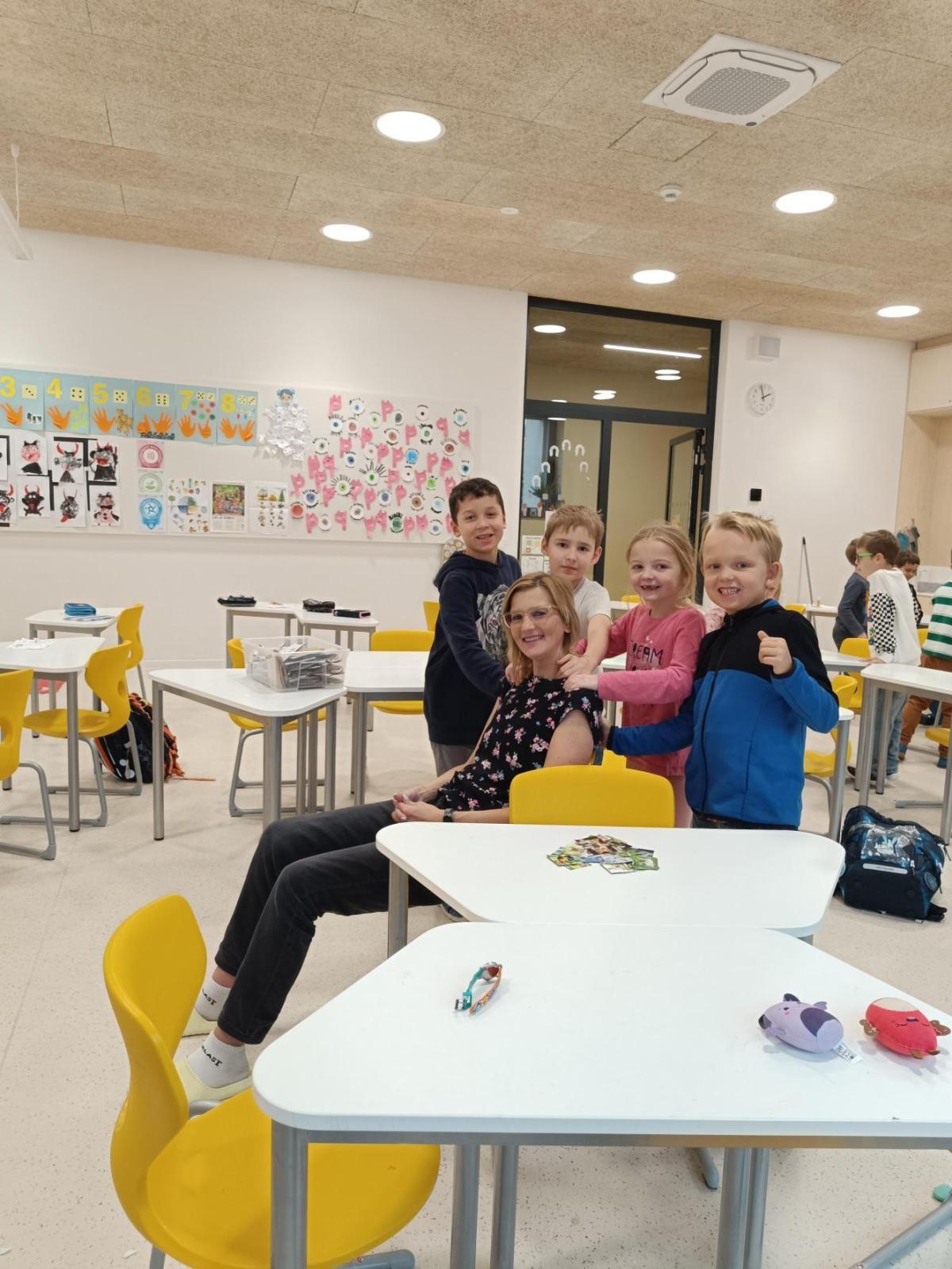 Od začátku prosince každý den odškrtáváme na adventním kalendáři, kolik nám ještě zbývá do Štědrého dne. Každý má svoje číslíčko a má připravenou vánoční hádanku. Užíváme i za nepříznivého počasí tělocvičnu, kde trénujeme šplh na tyči. Vyrábíme přáníčka pro rodiče pro radost a nezapomněli jsme i popřát našim paním kuchařkám, vedení školy a paní recepční. Hrajeme pexeso, stavíme z lega a největším hitem měsíce jsou zažehlovací korálky. Děti to strašně baví a stavíme opravdu každý den. Zavítal k nám i canisterapeutický pes Olaf, se všemi dětmi se pomazlil.