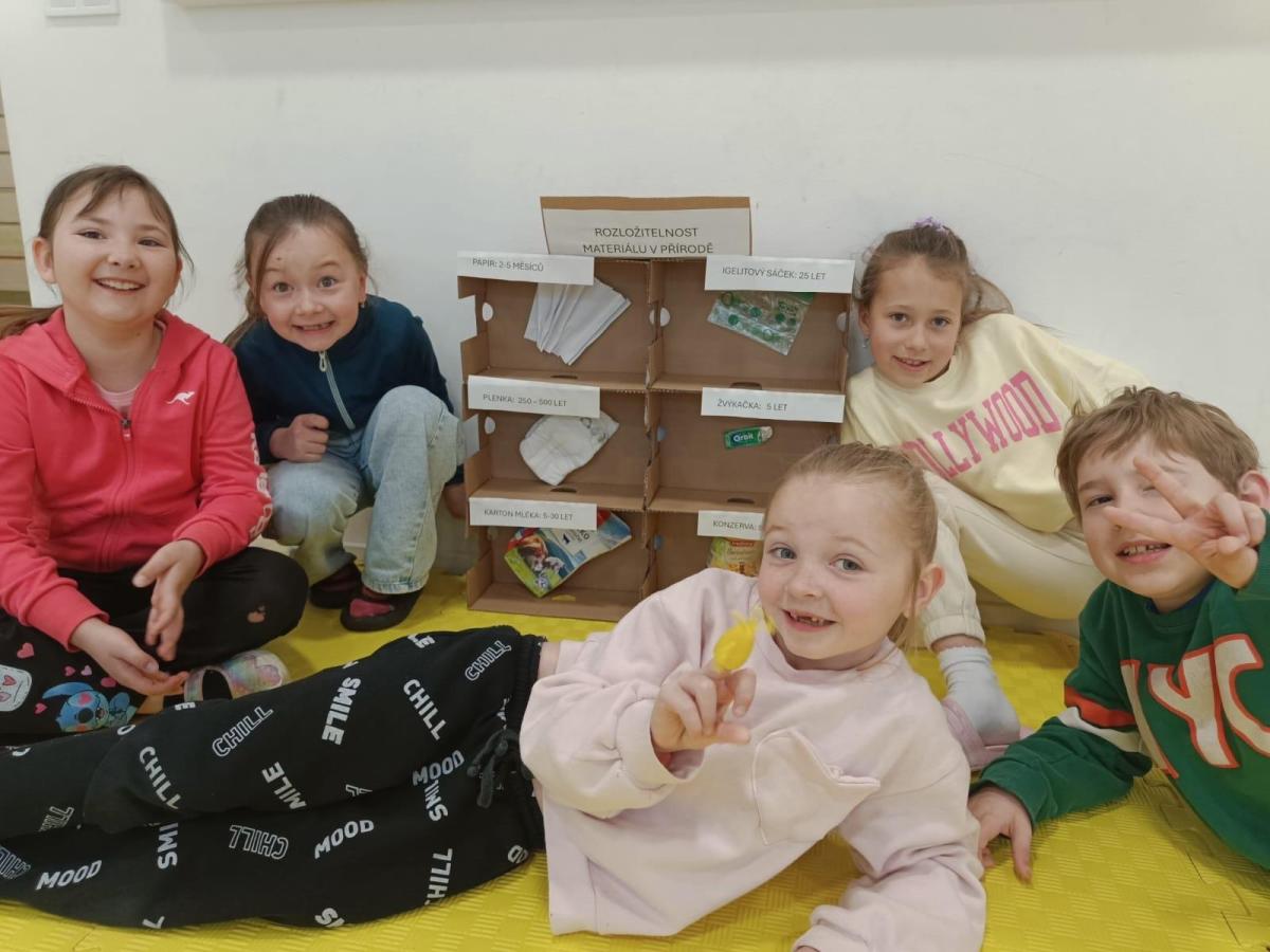 Společně jsme se pustili do krásného projektu ke Dni Země, kde každý přiložil ruku k dílu. Děti se s chutí vrhly na práci – lepily jsme bedýnky, sbíraly různé materiály a hlavně si povídaly o tom, co se v přírodě rozloží hned a co tam naopak „straší“ opravdu dlouho.