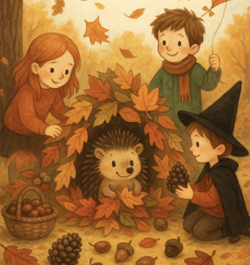 Děti mu pomohly – sbíraly listy, šišky, kaštany a vyráběly podzimní dekorace. Společně mu vytvořily krásný úkryt.