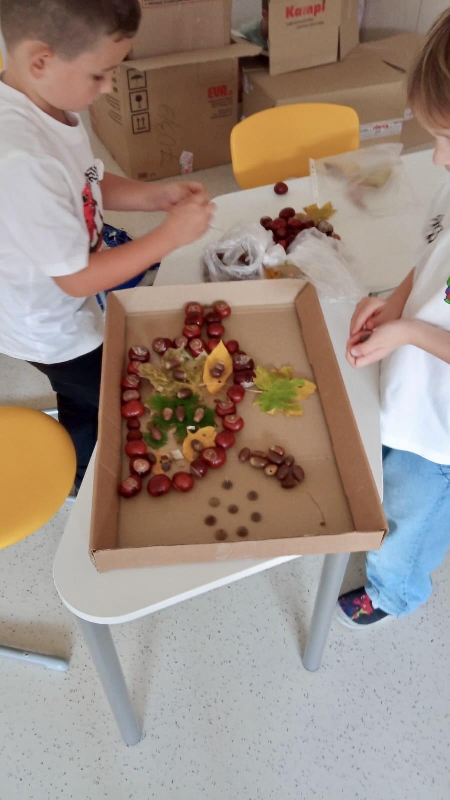 chaloupku" a pro lepší vžití do příběhu jsme měli i malou rekvizitu perníkové chaloupky a děti si ji zkoušeli i zahrát. A protože je venku podzim v plné parádě, i tvoření navazuje na toto krásné roční období. Děti si nejenže donesly kaštany a vyrobili z nich obrazy, ale také se zaměřily na listy. Tvořili se ježky, kteří teď vypadají ještě barevnější a listnatější, a vytvořili krásně barevný strom. A máme ještě jednu novinku! Do party nám přibyla nová maskotová kamarádka Chobotnička Vlnka, která s našimi dětmi bude zažívat různá víkendová dobrodružství.