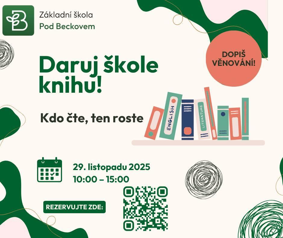 Na adrese https://knihovna.skolapodbeckovem.cz si můžete vybrat a online zarezervovat titul, který chcete škole věnovat.