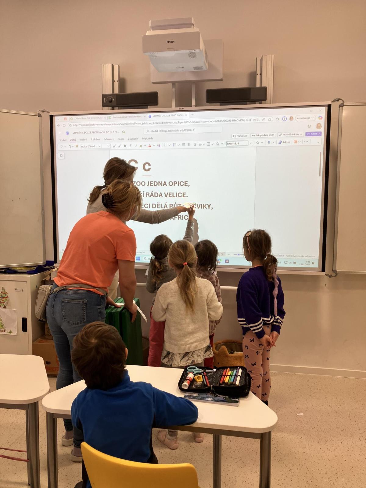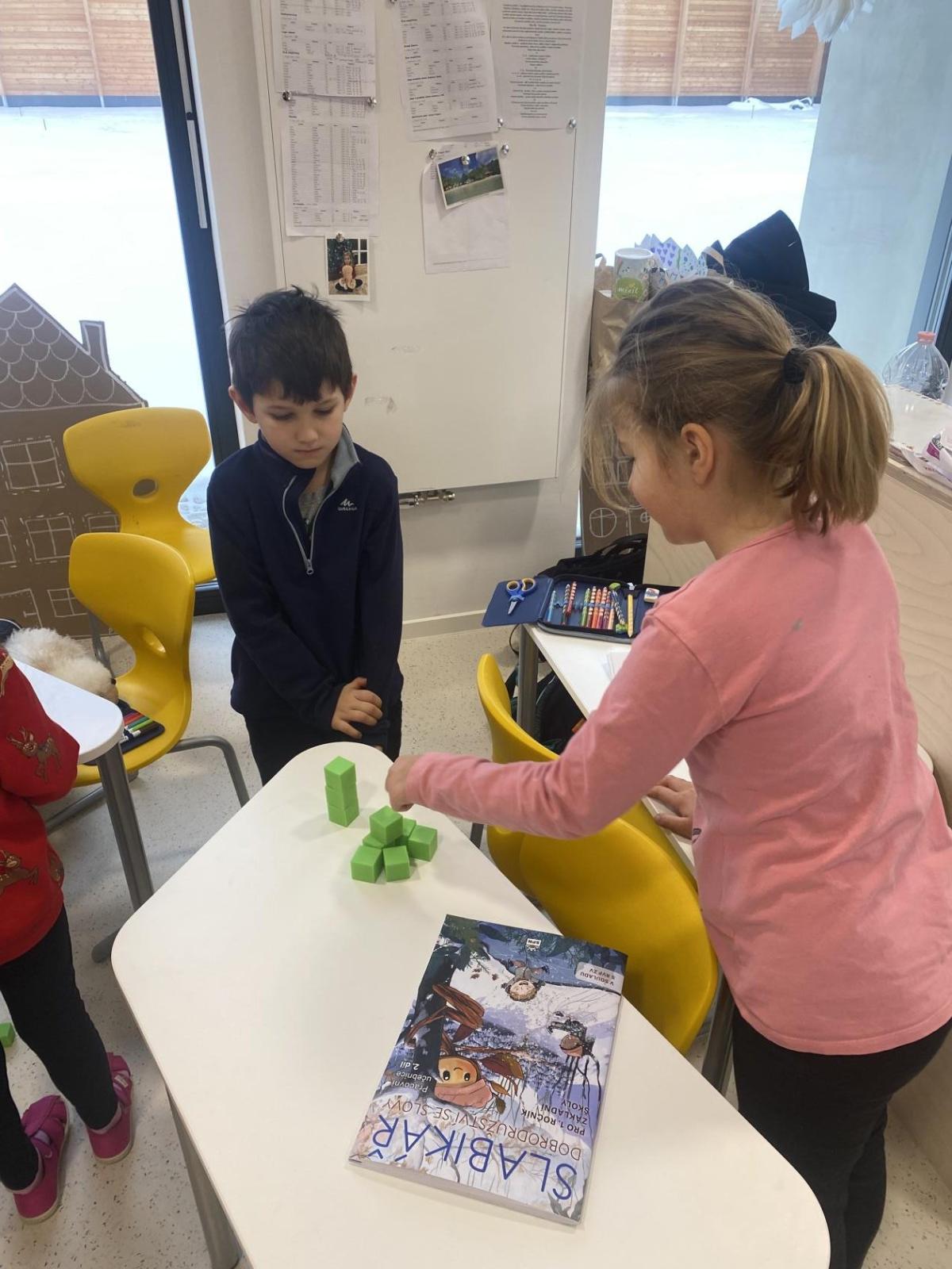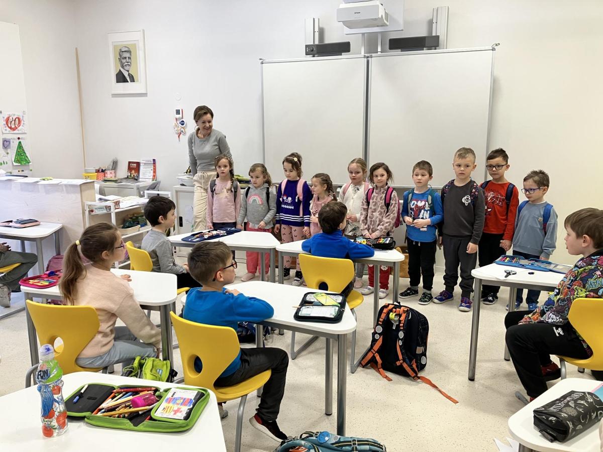 Naši školu navštívili předškoláci z Předboje. Dorazilo 20 budoucích prvňáků, kteří se přišli podívat, jak to v takové škole chodí. Naše školní děti pohotově zapojily mladší kamarády do učení. Předškoláci si tak mohli vyzkoušet, jaké to je, učit se matematiku hrou a jak se seznamujeme s písmeny. Užili si i velkou přestávku ve škole, při které skoro nikdo nesedí a užívá si společné hry.