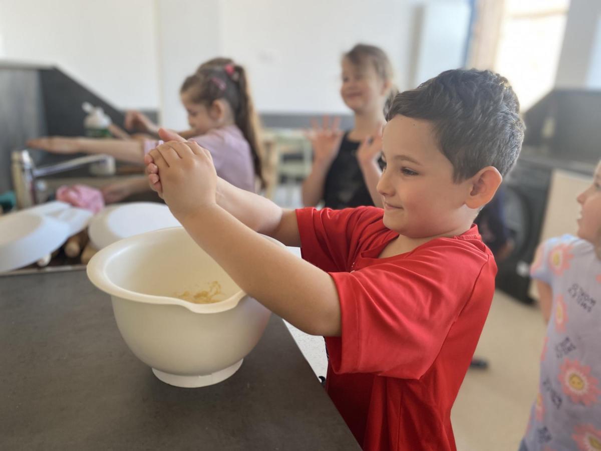 Jak to vypadá, když prvňáci kuchtí masopustní koblihy?