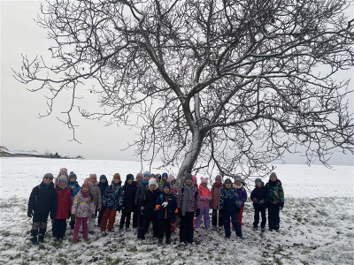 Prvňáci se vypravili na celé dopoledne ven s paní učitelkou Šárkou Polaneckou. Vyzkoušeli jsme si psaní do sněhu i počítání na zemi. Představili jsme si stopy zvířat a po cestě stopovali, koho potkáme. Stavěli jsme sochy ze sněhu, vyfotili se u našeho stromu a na závěr jsme si vyzkoušeli bádání nad tím, za jak dlouho roztaje sněhová koule. Reflexi ve třídě jsme zakončili popisem toho, co jsme zažili a co nového jsme se naučili.