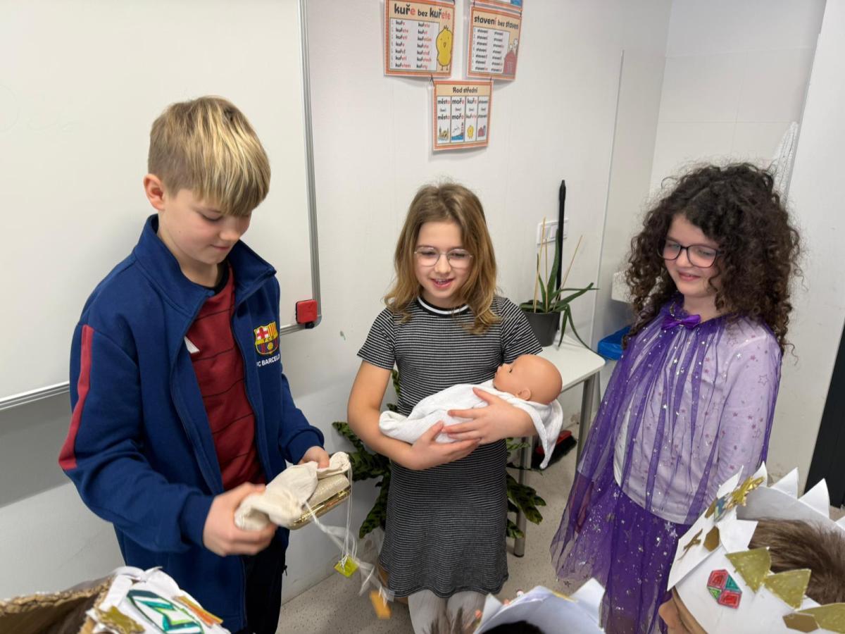 Děti ze 4. B se proměnily na Tři krále a s radostí převyprávěly jejich příběh.