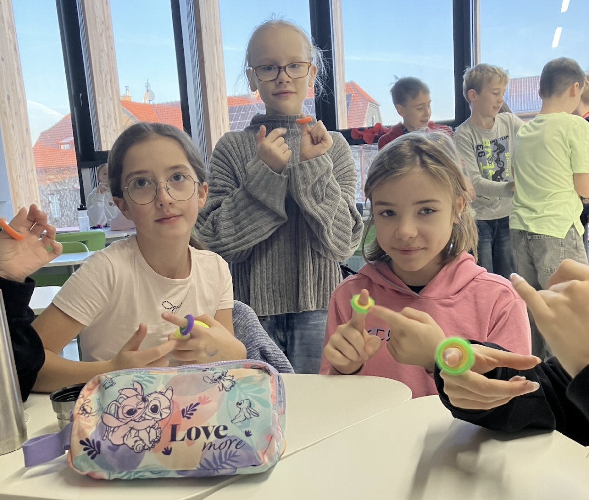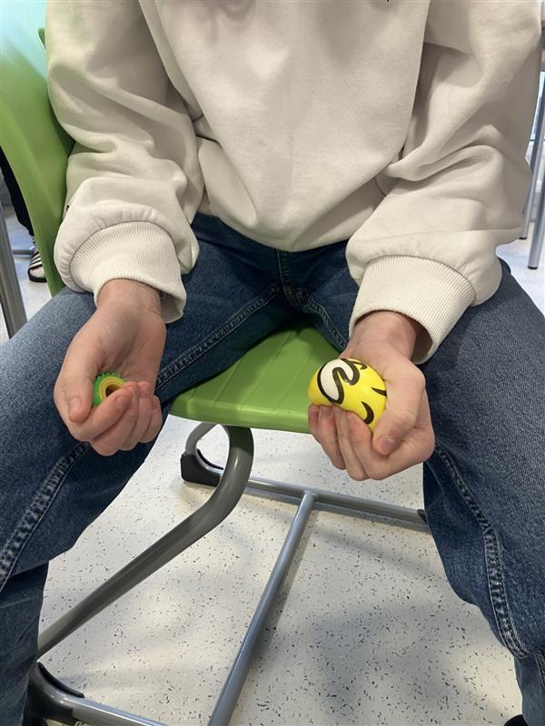 Na naší škole díky úsilí sociální pedagožky Markéty Šváb Fišerové mají žáci možnost využívat různé senzorické pomůcky, které jim pomáhají lépe zvládat náročné situace během vyučování. Patří mezi ně například masážní a gelové balónky, antistresové prsteny nebo guma na stůl pro uvolnění napětí.