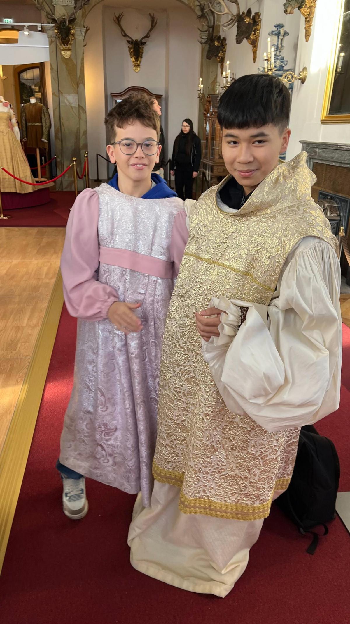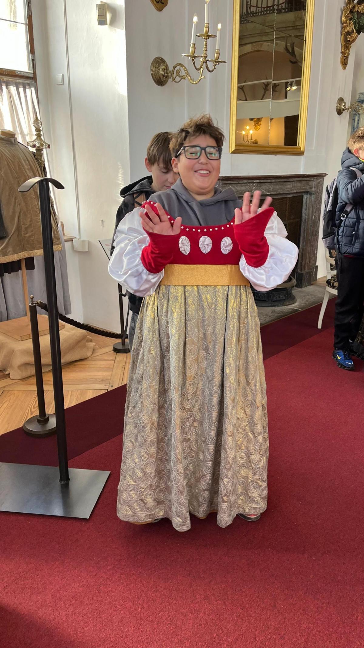 Kromě záběrů ze zámku Moritzburg (známý především díky pohádce Tři oříšky pro Popelku), měli za úkol oslovit místní a vyptat se je na nejrůznější otázky - samozřejmě v němčině! Během prohlídky zámku se děti mohly zúčastnit interaktivní hry s oříšky, při které si vyzkoušely práci střihače, zvukaře i kameramana Vorlíčkovy slavné pohádky. V posledním sále vynesly Popelčiny šaty z oříšků. Někteří se převlékali za prince, krále, nebo princeznu Droběnu a v kostýmech si zatančili na plese, což hlasitým potleskem ocenili i ostatní turisté. Druhá část exkurze probíhala v samotném srdci Drážďan, kde si žáci na slavných trzích Stritzelmarkt mohli koupit místní dobroty, suvenýry a dárečky. Během výletu se každý snažil alespoň trochu šprechtit, což ocenila především paní učitelka Klára Halienková, která si s dětmi exkurzi moc užila, stejně jako paní učitelky třídní - Tereza Jiroutková a Anna Pavlíčková a paní ředitelka Petra Mazancová.